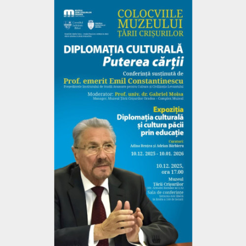 Prof. emerit Emil Constantinescu, fost președinte al României în perioada 1996-2000, va susține miercuri, 10 decembrie, la ora 17.00, conferința intitulată „Diplomația culturală.